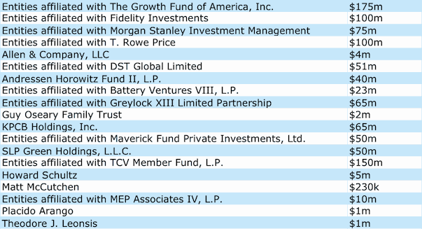 However, the ‘F’ and ‘G’ round investors (listed below, with the amount they invested) are now left holding the can.