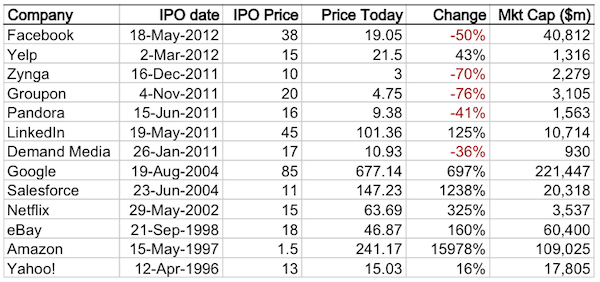 Zynga, like Groupon, surfed a wave of hype and explosive growth to rush to IPO, allowing the founders and early backers’ to cash out before it dawned on investors that the business model’s half-life was on the verge of expiring. Google, on the other hand, having triumphed over AltaVista, Northern Lights and Inktomi, found a viable business model and then proceeded to diversify beyond its core search-driven advertising business into apps, maps, videos and mobile phones, and continues to expand into driverless cars, glasses and fiber.