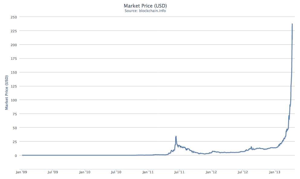 Bitcoin’s supporters have shrugged off such concerns. This year has seen the hype reach fever pitch, with the mainstream media quoting questionable claims that, in the aftermath of the Cypriot haircut, Italians and Spaniards are swapping their euros for bitcoins. The media attention has led to mainstream awareness and interest – you can now place bets on the price of bitcoins with financial spread-betting company IG Index.