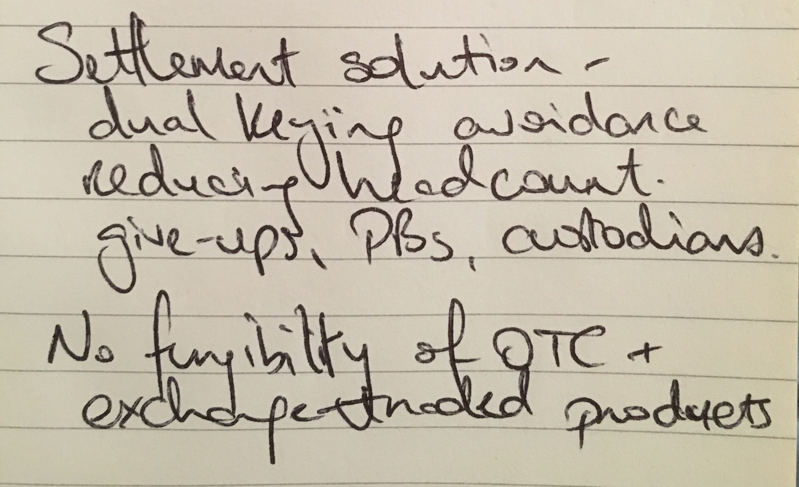 The idea was that the market counterparties could trade directly with other counterparties they had a pre-existing relationship with and, therefore, “trusted”. Later, central counterparties (CCPs) would remove the need for a pre-existing relationship by providing a certification and novation service (by, for example, making available information about what types of trades they would be prepared to novate on behalf of the counterparty and/or digitally counter-signing the order messages).